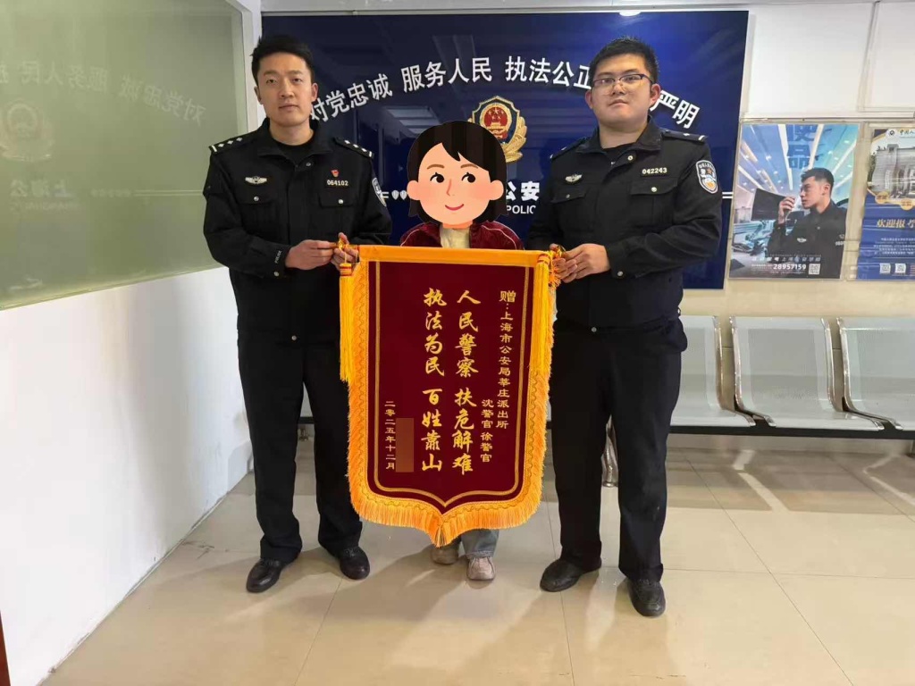 马女士向警方送上锦旗以示感谢。