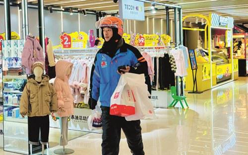 北京房山某商场内正在忙碌的外卖员(图/于海军)